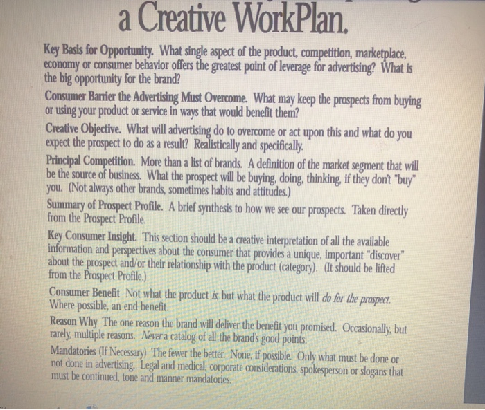 Solved Creative Work Plan For My Project About New Product Chegg Com